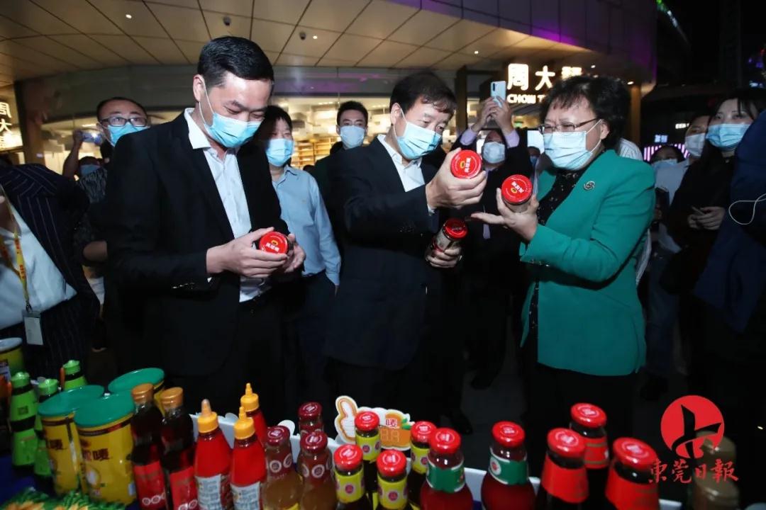 此外,肖亞非市長還走進直播間, 主播小姐姐現場為其推介鳳球嘜產品。 除了線下展位現場可以買到鳳球嘜的調味料, 不能親臨現場的鳳球嘜粉絲們, 還可以進入“樂購東莞”的直播間, 看主播小姐姐推介鳳球嘜產品