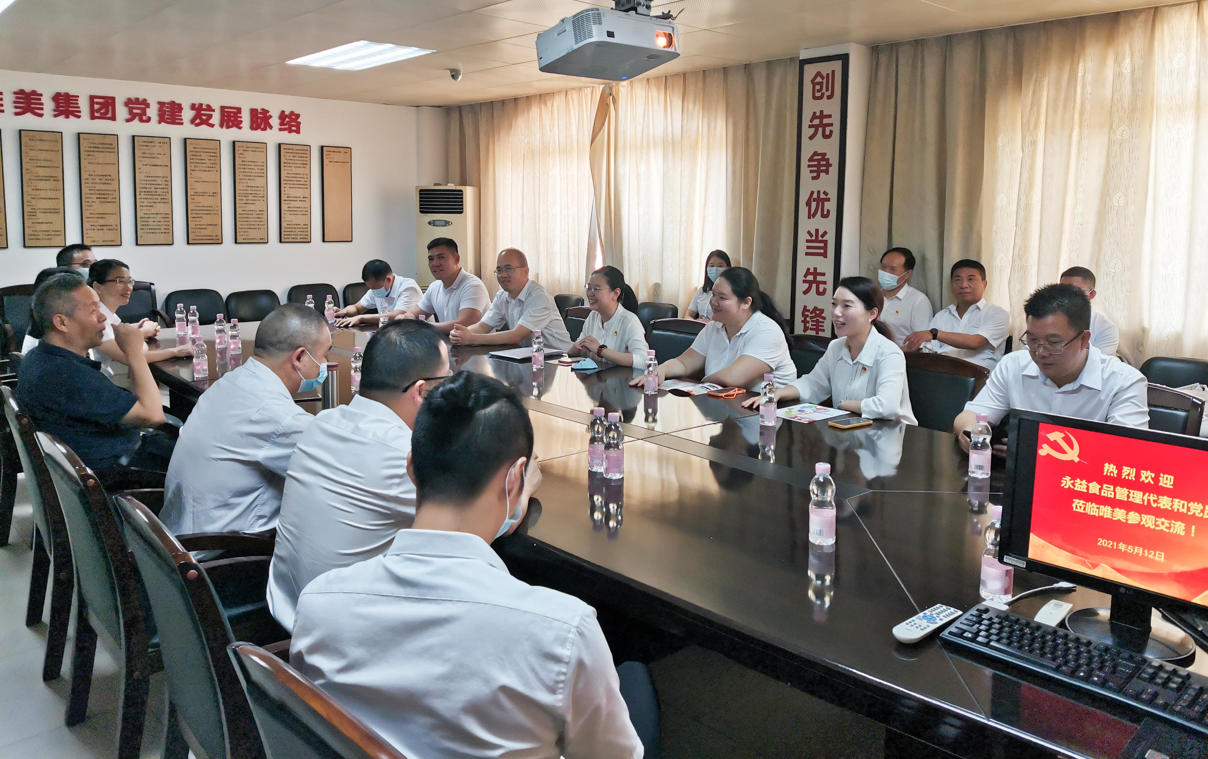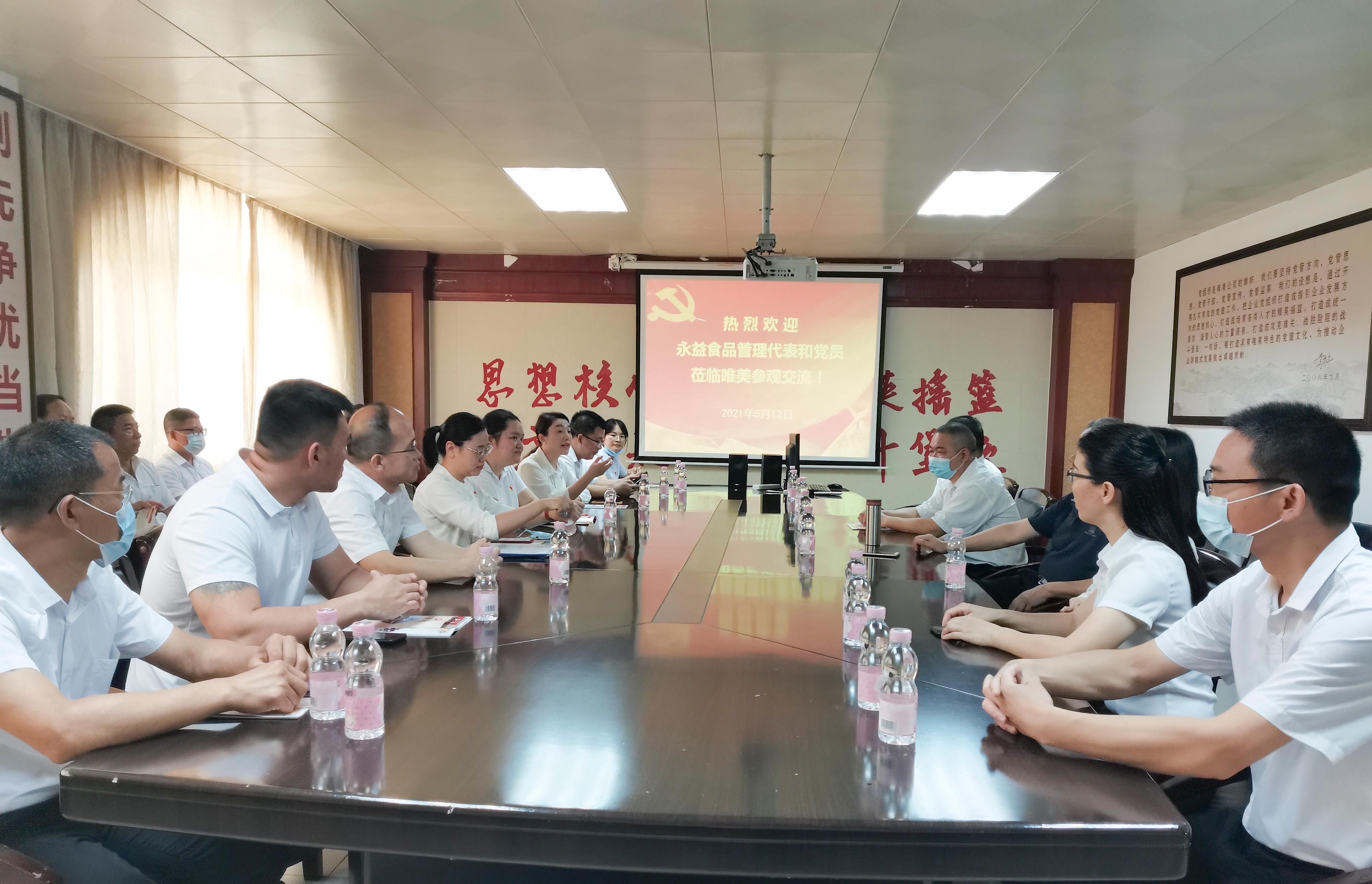 2021年5月12日上午,永益食品管理代表和黨員到唯美集團參觀學習唯美特色黨建工作,這是永益食品慶祝建黨100周年系列活動的第一站。