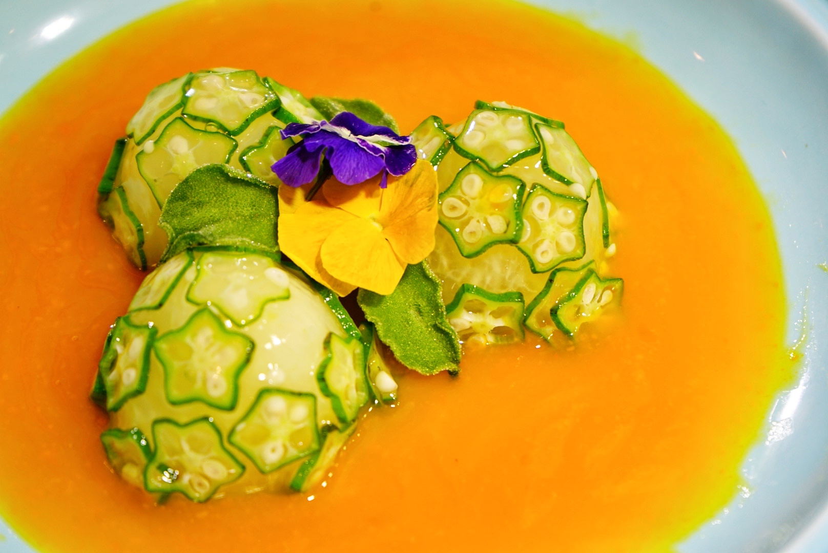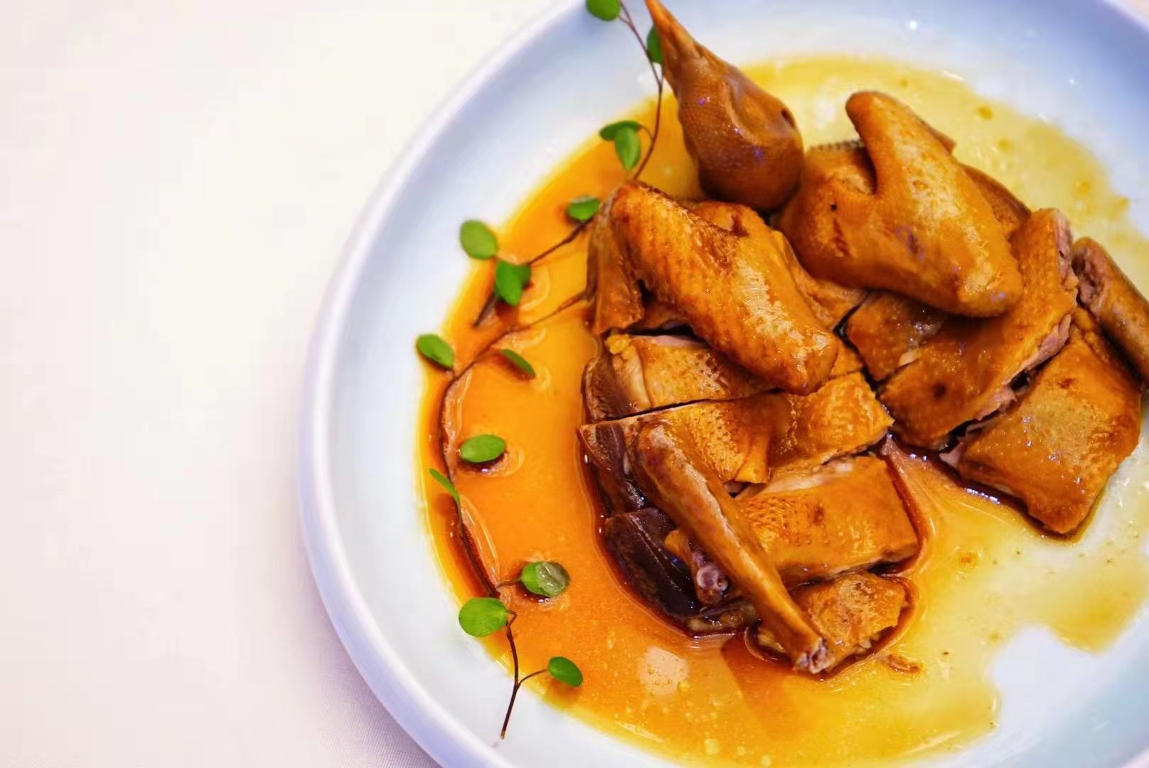 實踐課程準備了十道創新菜肴現場進行烹飪示范:潮式黃魚凍、陳皮鵝肝棒棒糖、魚子醬蟹肉撻、玫瑰豉油鴿、上湯參茸燉繡球、黑松露鮑魚焗雞煲、咖喱蝦球伴五彩饅頭、星空隕石、金汁五谷白玉盞、金米龍蝦湯泡飯等。所選菜肴色、香、味、形俱全,融入時興的餐飲理念,均為適合酒店生產經營的低成本、高毛利的熱銷菜品,讓學員們能夠從課程學習到實際生產經營輕松轉化,真正做到學以致用。